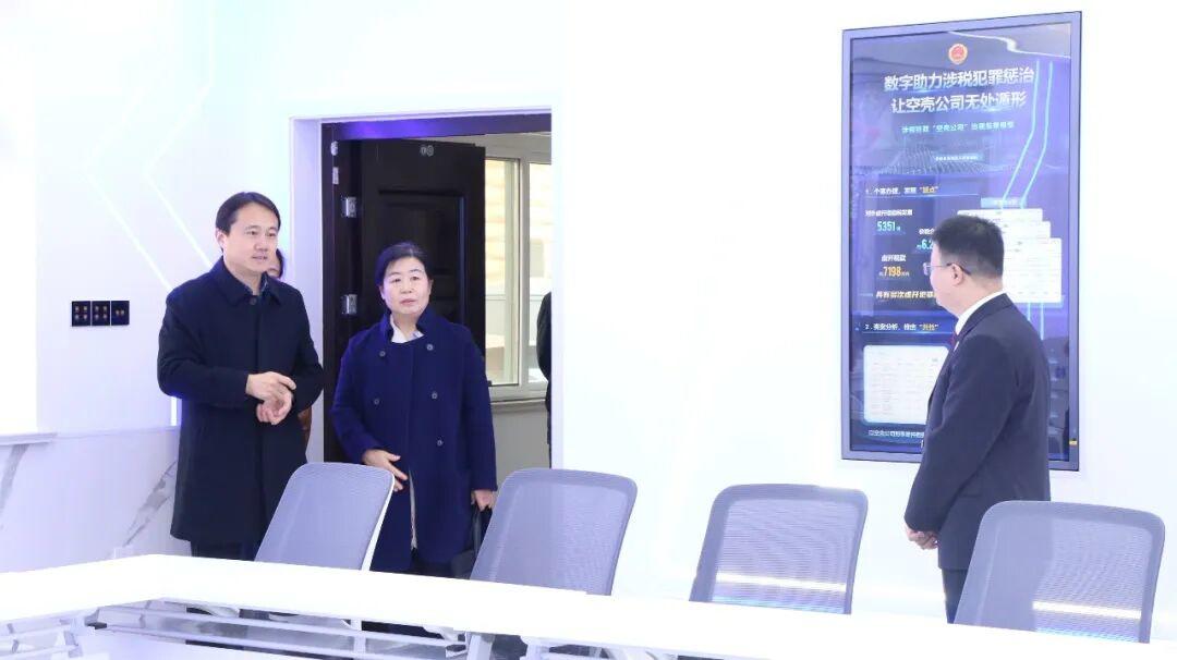 刘芳美在党组书记、检察长束斌的陪同下,参观了12309检察服务中心、数智化办案中心、公益诉讼快检室、院史馆、融媒体中心等场所,详细了解了检察工作的具体流程、办案环节和文化建设。