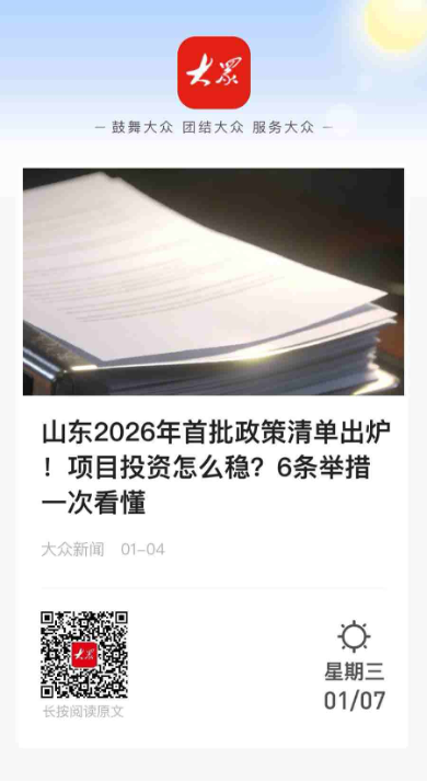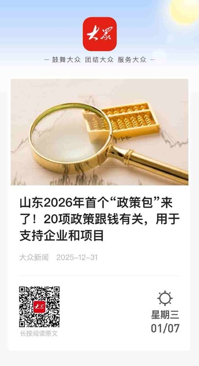 山东2026年首个“政策包”来了!20项政策跟钱有关,用于支持企业和项目