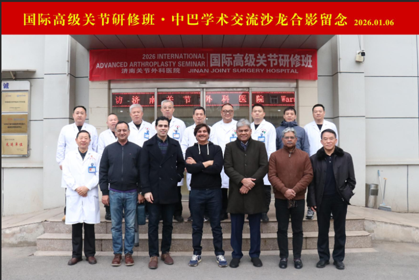 为进一步搭建中外学术交流桥梁,分享前沿医疗技术、临床诊疗经验及科研成果,拓宽国际医疗交流渠道,1月6日,“2026国际高级关节研修班”在济南隆重开幕。此次研修班聚焦关节外科临床技术规范化建设,来自巴基斯坦的五位医疗专家与济南关节外科医院专家团队齐聚一堂,围绕机器人手术、单髁置换等先进的关节外科微创手术技术展开深度交流与探讨。