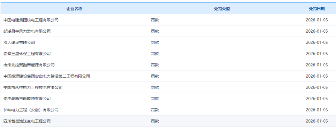 2026年首批能源监管罚单出炉!中国电建、葛洲坝、中国能建等12家企业被罚