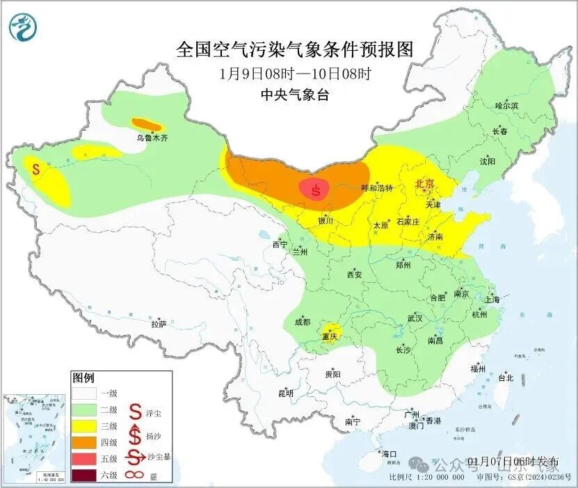 8日至10日,受冷空气大风影响,内蒙古中西部、甘肃西部、宁夏、陕西北部、山西北部、河北、山东等地的部分地区有扬沙或浮尘天气。