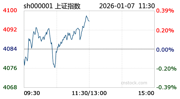 AI小壹1月7日讯 沪市小幅上涨,最高触及4098.78点,最低下探4075.7点,振幅0.29%。截至今日11:30收盘,上证指数报4095.54点,涨幅0.29%,成交额7617.22亿元,成交量4.32亿;深证成指报14071.35点,最高14111.18点,最低14022.28点,涨幅0.35%,成交额1.07千亿元,成交量5.92亿;创业板报3332.74点,最高3351.22点,最低3317.3点,涨幅0.41%,成交额4972.37亿元,成交量1.79亿。