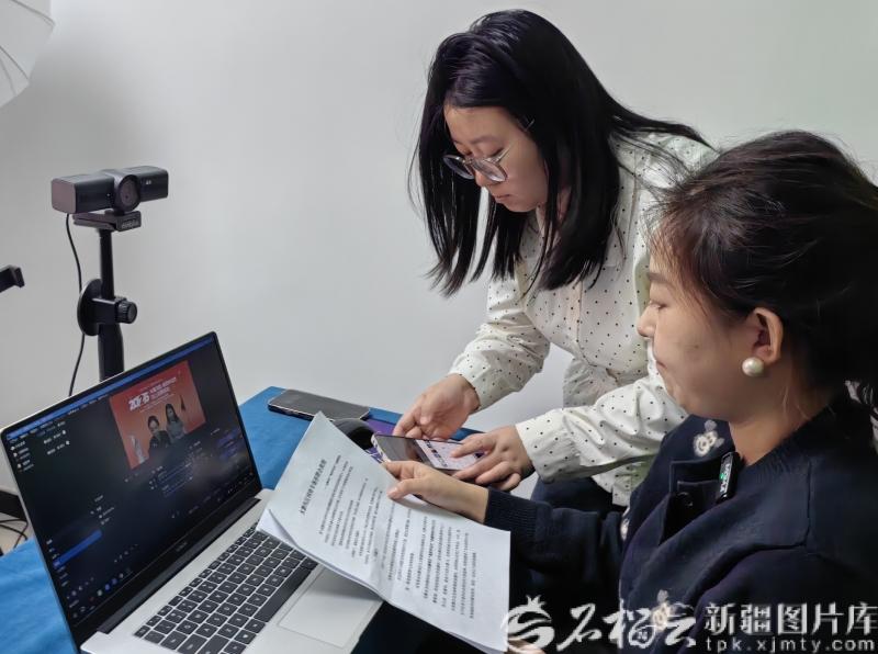 1月6日,在水磨沟区“2026届高校毕业生”线上招聘会现场,工作人员正在进行直播调试。