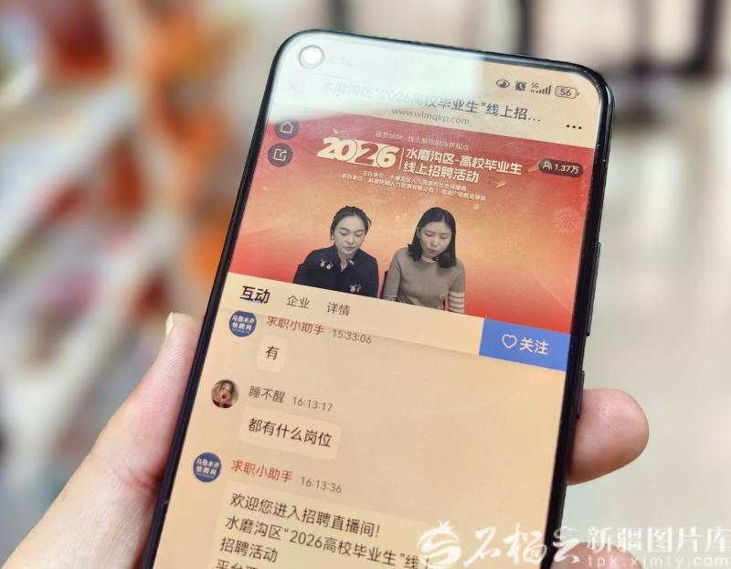 石榴云/新疆日报讯(记者 李雄心摄影报道)为切实保障高校毕业生春节前就业对接需求,精准搭建青年人才与企业高效对接的“云桥梁”,1月6日,由乌鲁木齐市水磨沟区人力资源和社会保障局主办的2026届高校毕业生线上招聘会,在南湖广场就业驿站正式启动。活动以直播带岗为核心形式,贴合毕业生求职特点,让青年群体足不出户即可精准对接优质岗位资源。