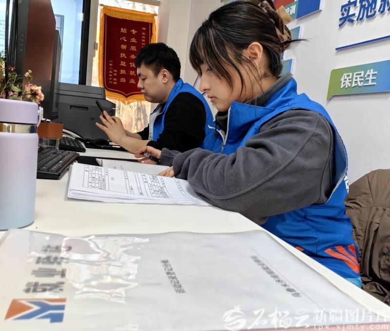 1月6日, 在水磨沟区“2026届高校毕业生”线上招聘会现场,南湖广场就业驿站工作人员在登记求职人员的信息。