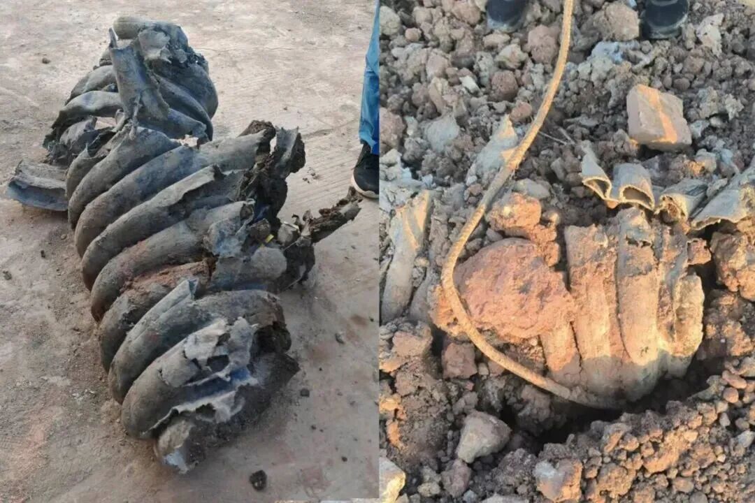 挖出的厂区外波纹管(左)和厂区内部波纹管(右)