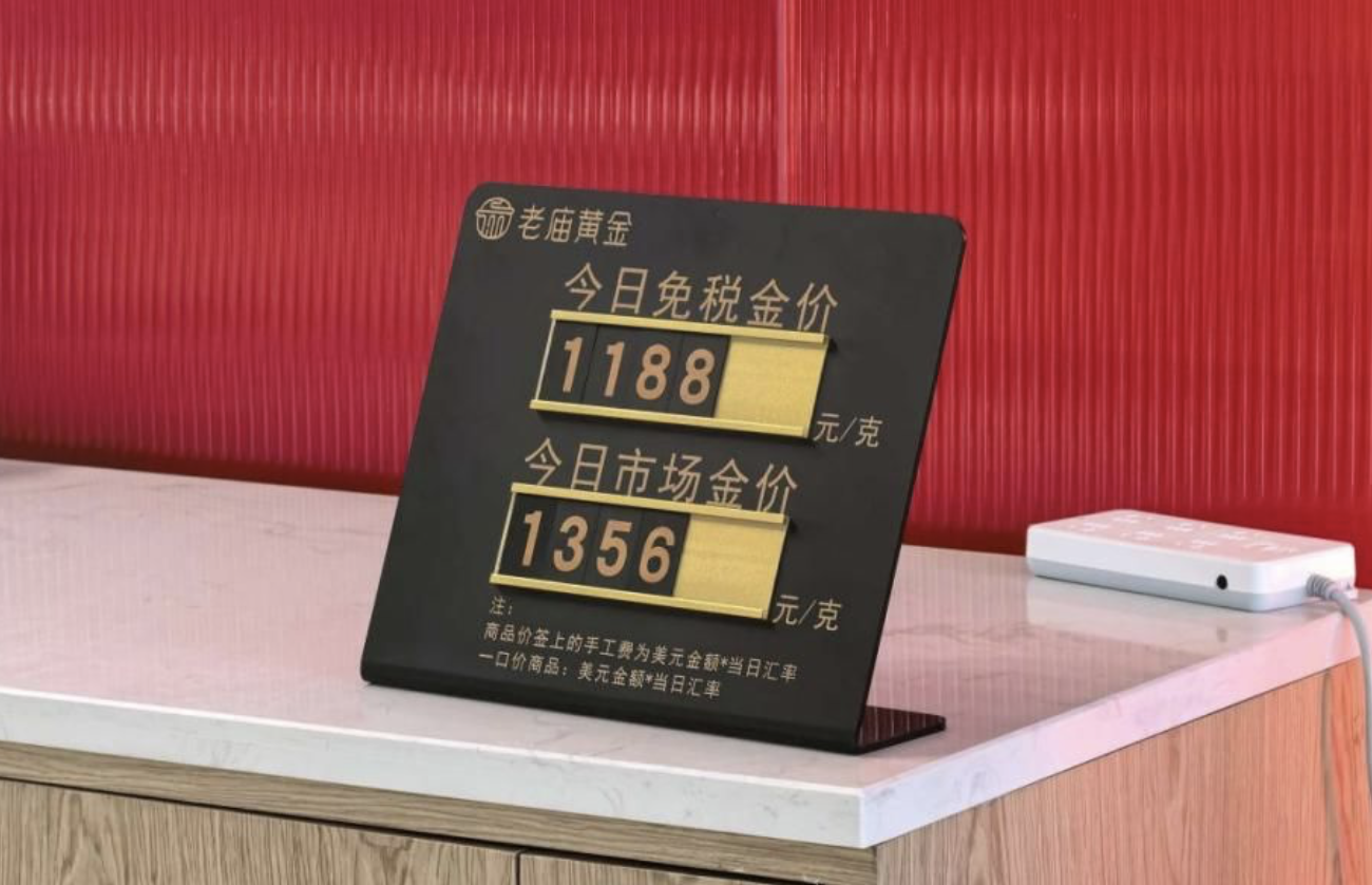 1月4日,cdf三亚凤凰机场免税店内老庙黄金的免税金价为1188元/克,市场含税金价为1356元/克,单克价差达168元。