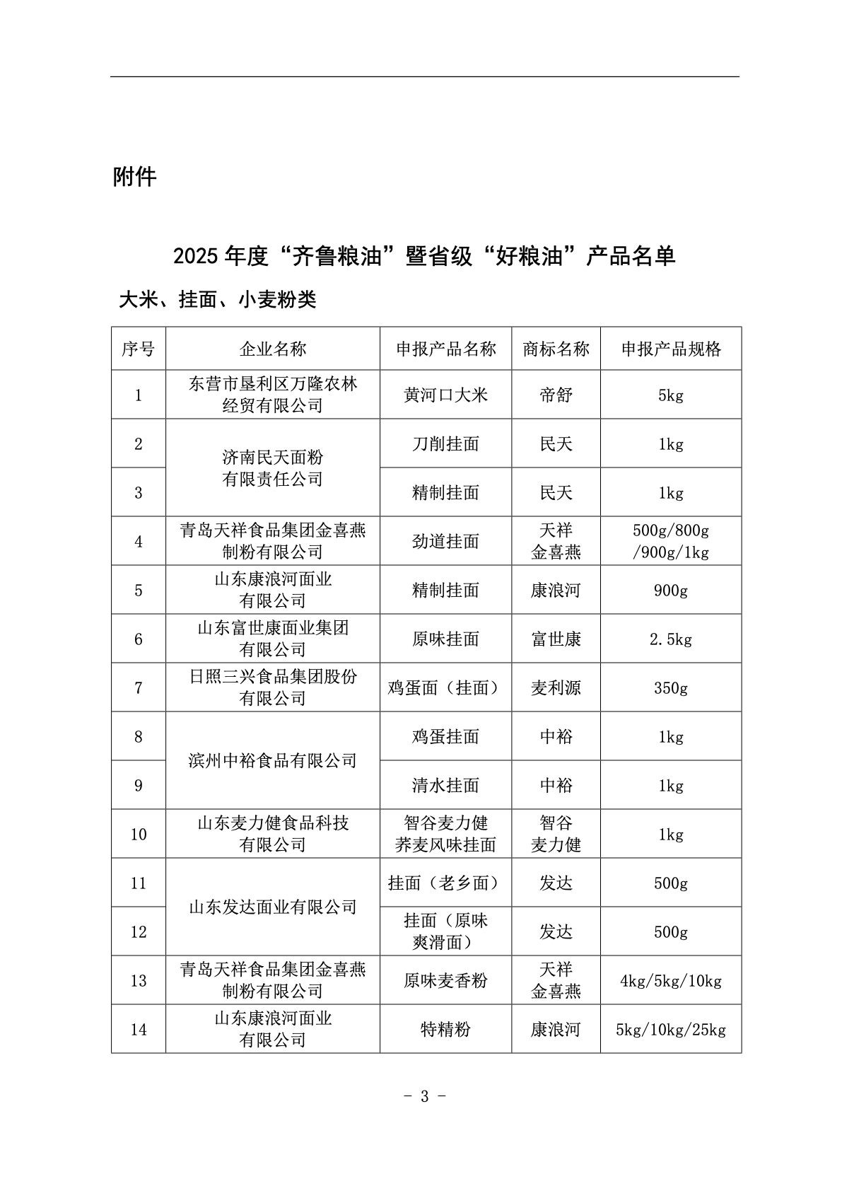 揭榜了!2025年度“齐鲁粮油”暨省级“好粮油”产品名单公布