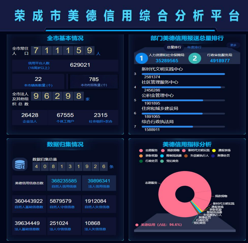 荣成还搭建了全国首个数字信用管理平台,将71.4万常住人口的信用信息纳入大数据管理,实现对村居信用状况的实时跟踪与规范分析。自推行信用建设以来,全市矛盾纠纷减少26%,治安警情下降21%,信用真正成为基层治理的“小宪法”。