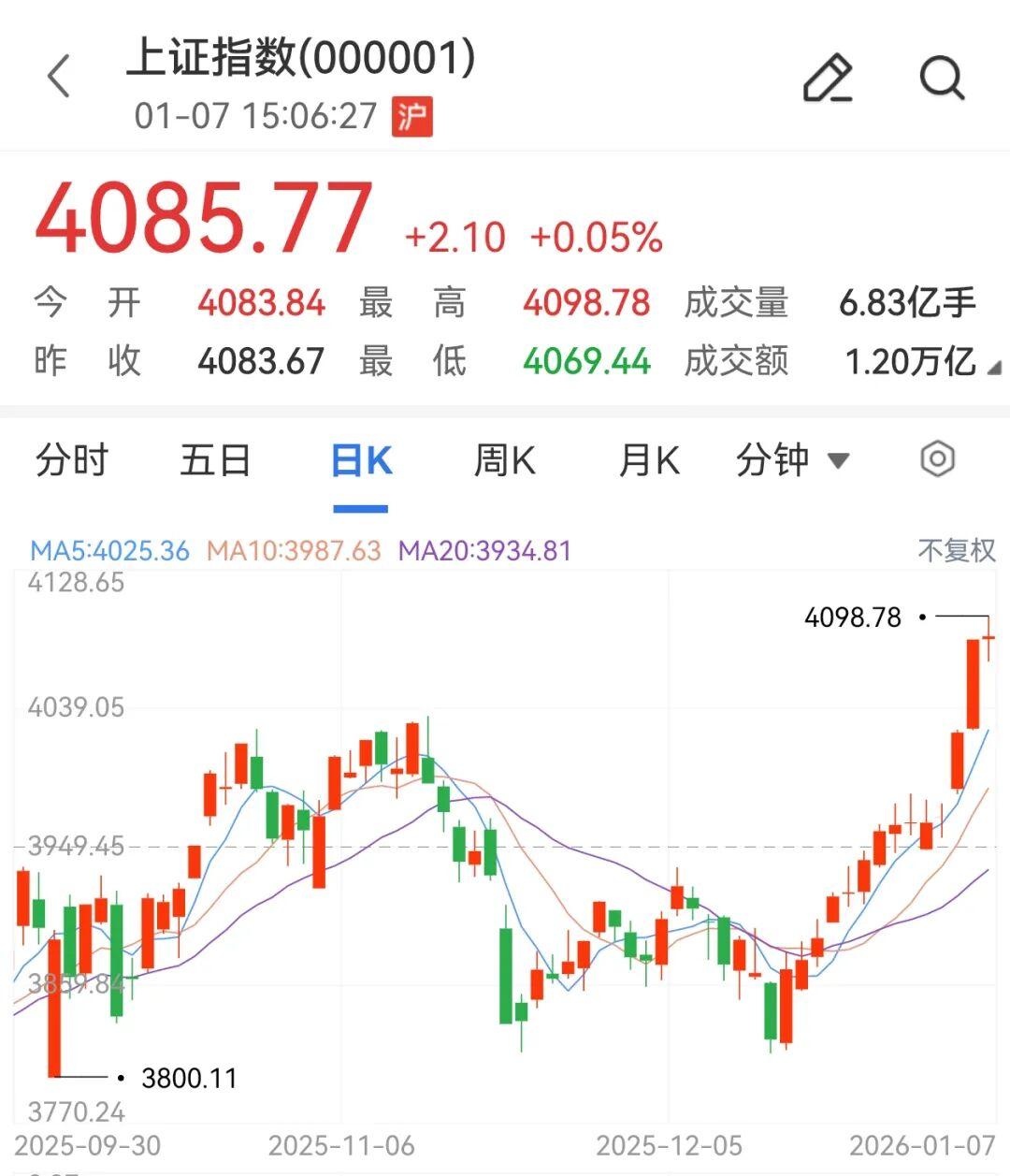 今日(1月7日)沪指微涨录得14连阳,创业板指冲高回落。沪深两市成交额2.85万亿,较上一个交易日放量476亿,成交额连续2个交易日超2.8万亿。