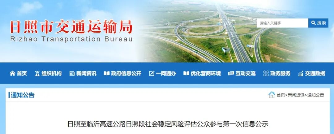 1月6日,日照市交通运输局发布《日照至临沂高速公路日照段社会稳定风险评估公众参与第一次信息公示》