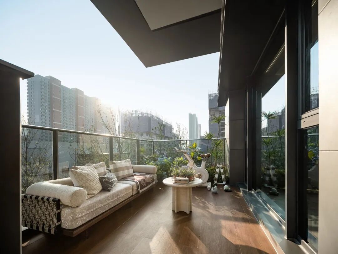 在这里“露台生活”有了具体的模样:它可以是一家人星空下的烧烤派对,是男主人安静品茗的独处角落,是女主人精心打理的花草王国,也是孩子们观察四季变化的自然课堂。庭院与室内通过无界的设计流畅衔接,生活场景得以自由延展。 在自家空中便能拥抱天空、收纳风景的闲逸,正是现代都市中最稀缺的奢侈。它完美诠释了项目所倡导的“松弛感”——不是无所事事,而是在专属的领域内,从容安排生活的节奏。