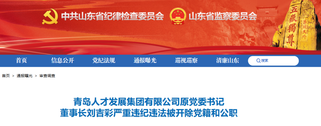 青岛人才发展集团有限公司原党委书记、董事长刘吉彩被“双开”