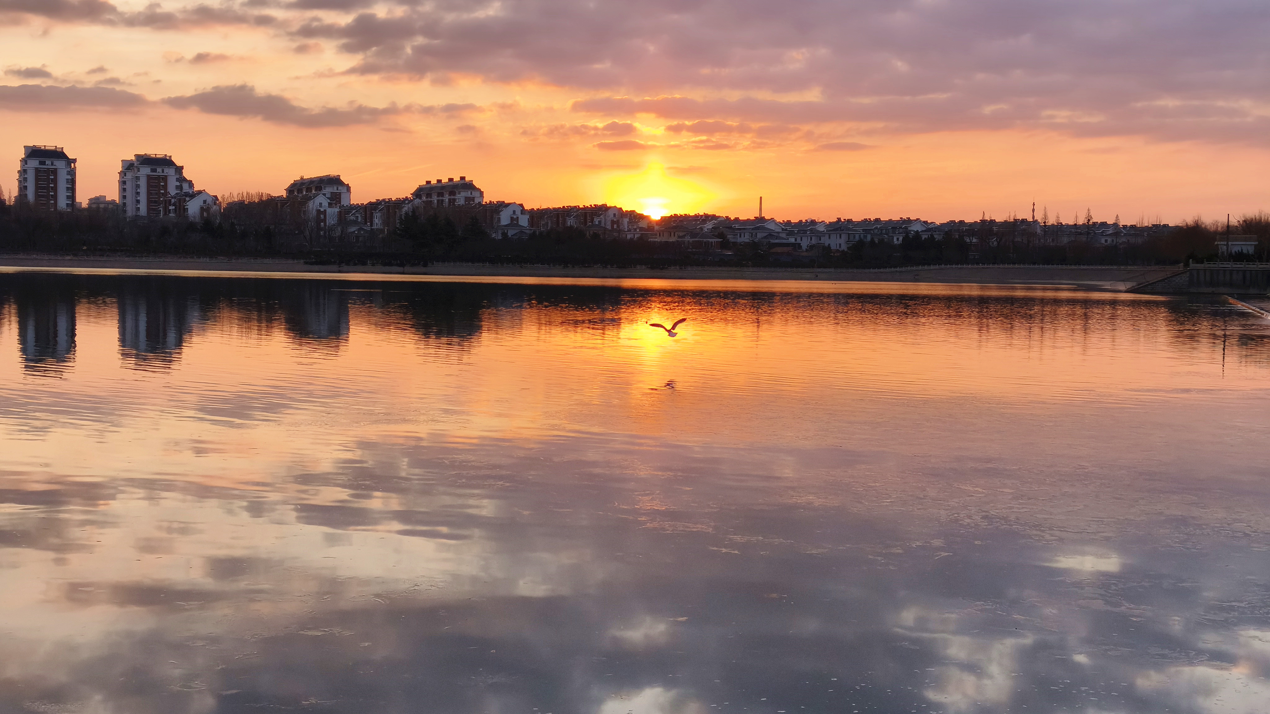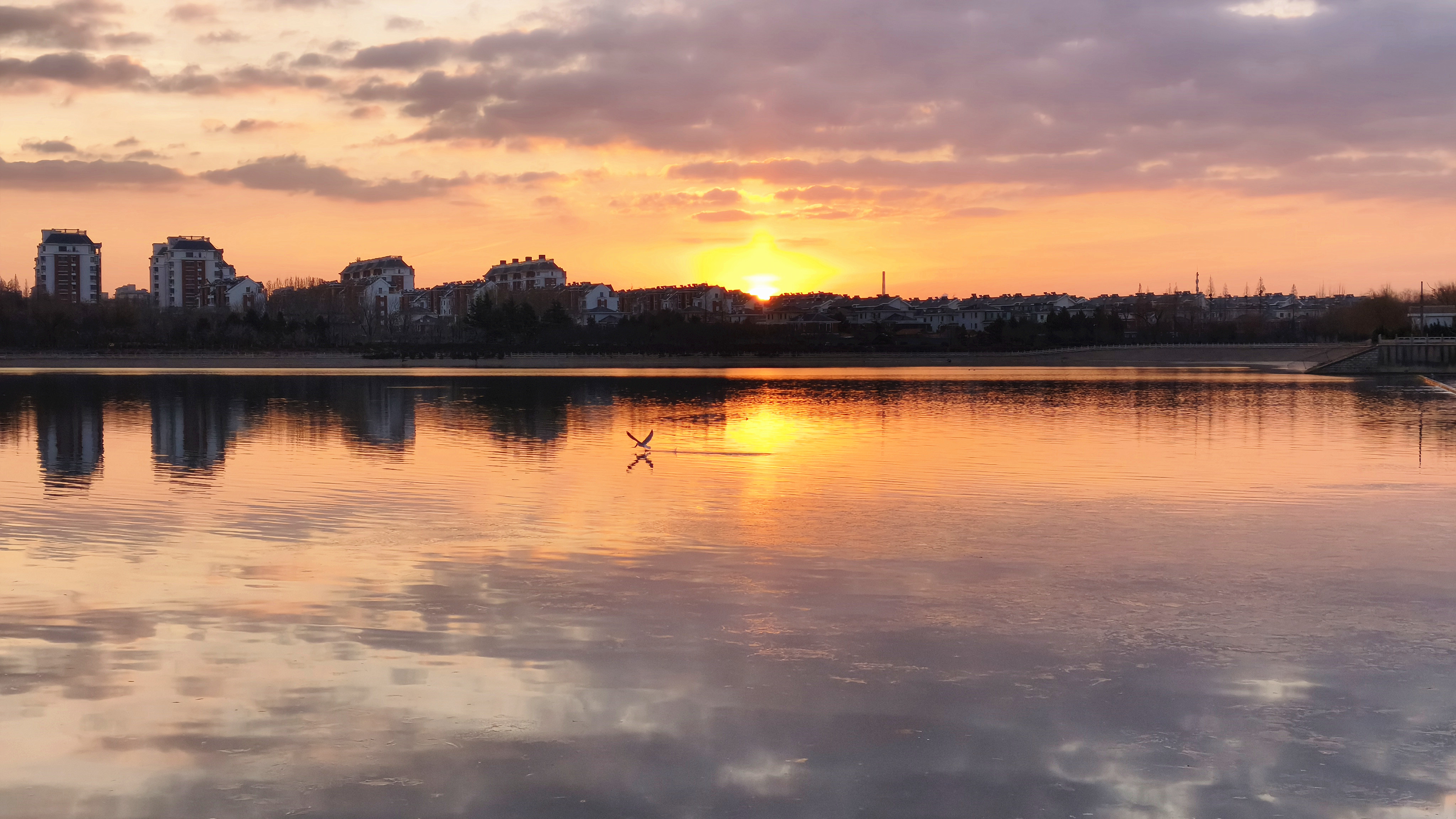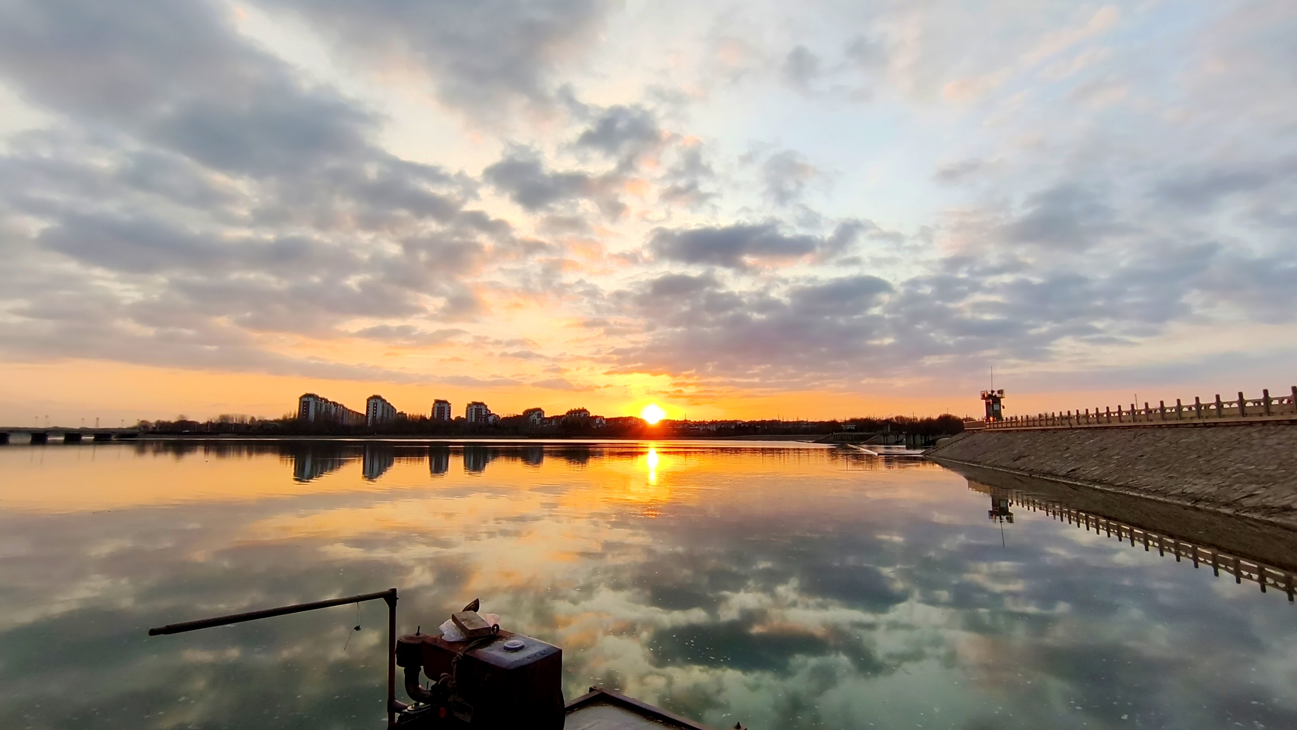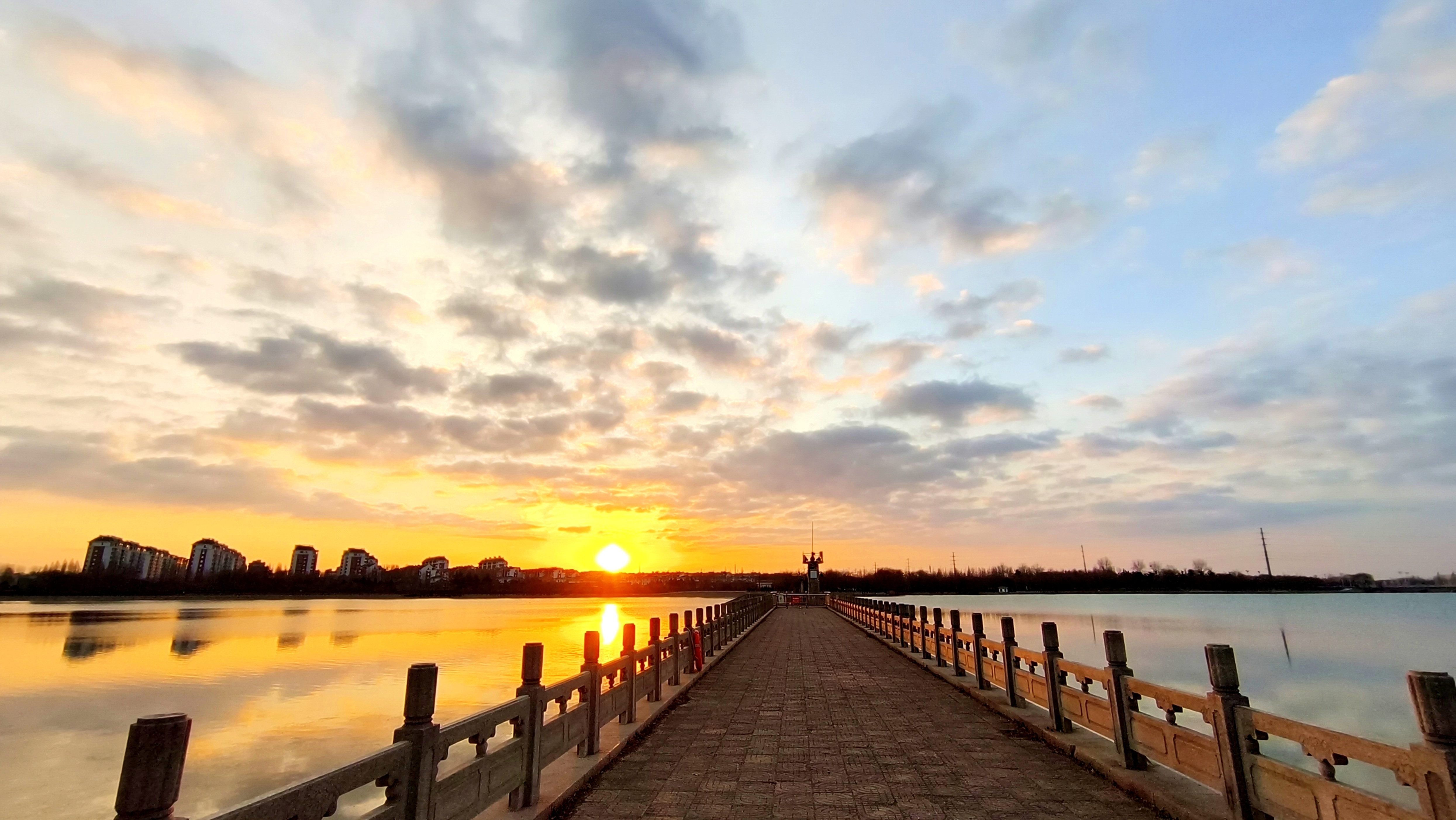 冬日里,位于东营市广饶县孙武湖景区的日出美景。(利津县委办公室李树军拍摄)