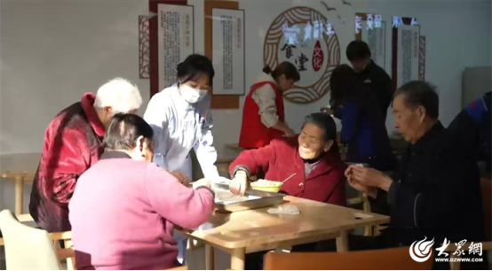 2024年11月14日一早,家住小白峪村的尚玉桐老人走进离家不到百米的六层小楼,与老伙计们打牌、听戏,休闲唠嗑,临近中午时分,相伴走进幸福食堂,擀皮、包饺子,在幸福食堂品幸福滋味。