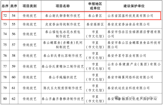 日前,泰安市人民政府公布了第十一批市级非物质文化遗产代表性项目名录,泰山石敢当朱砂红传拓技艺、泰山谢氏御香制作技艺被列入泰安市第十一批市级非物质文化遗产代表性项目名录。