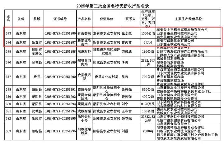 “泰山番茄”“新泰红毛山羊”跻身国字号榜单
