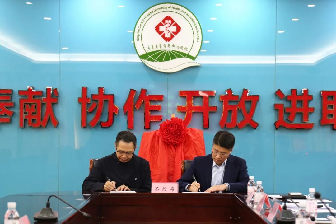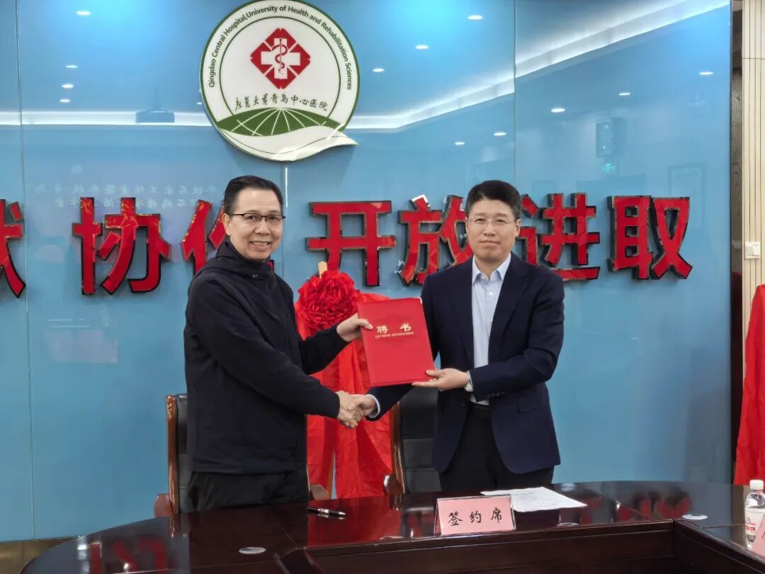 康复大学青岛中心医院院长邢立泉与原广州市番禺区第二人民医院院长乔铁正式签署合作协议并颁发聘书。
