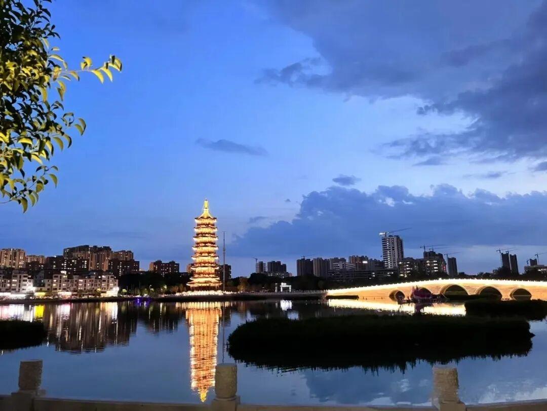 漫步十里长堤,视觉冲击目不暇接,心灵震撼激荡涌动。山水林苑,彩道香径,廊庑房宇,栈道天桥,楼台亭阁,今古雕塑……像跳动的音符,按韵律谱成曼妙的乐章;如斑斓五彩,按妙思神驰绘就锦绣画卷。这里有河,以堤带水、水随堤走,迤逦环绕、周匝全城,清波漾漾、流水汤汤;这里有湖,泓泓碧玉、如鉴新磨,水草青青、鱼若悬空,天光云影、尽落湖中;这里有山,不比五岳太行,不比天山昆仑,然也别具洞天,尽显岭之突兀,峰之巍峨,山韵彰然;这里多花,取次花丛,目不暇顾,姹紫嫣红,芳香四溢,突显“花城”底色内涵;这里多树,乔灌错落,四季常绿,青青葱葱,郁郁蓊蓊,尽展“林城”格调风韵;这里有飞亭画桥,碧瓦青屋,流韵典雅,古色古香。噫戏,好大一个“圆”,好大一个“园”,庆幸今生,我们有缘。曹州古城,从贫穷落后中姗姗走来,今天,终于华丽转身,破茧蝶变,出落成楚楚动人的“青春姑娘”。