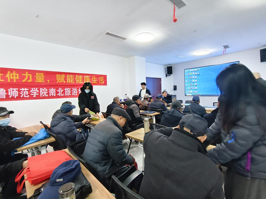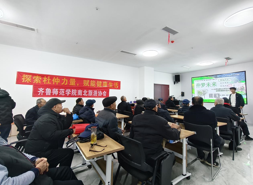 2025年12月1日,地理与旅游学院“杜仲产业实践服务团队”联合南北旅游协会社团,走进章丘区文化路社区,开展“杜仲传爱润初心”公益服务活动,为社区老年群体送去健康关怀与温暖。