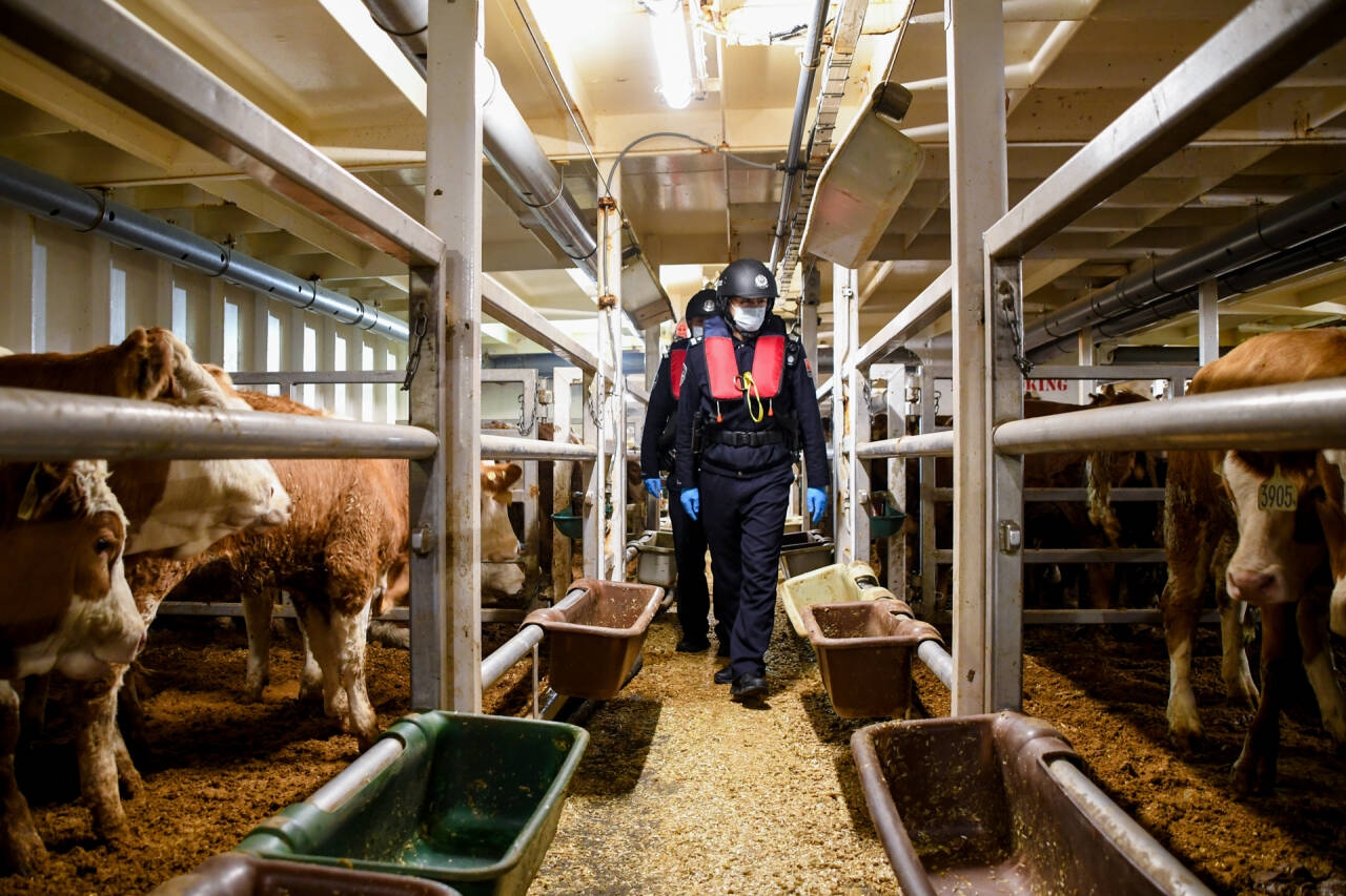 “我们接到该轮靠泊申请后,立刻与联检部门、代理公司联系,掌握船舶、船员、载运活牛相关情况。” 该站执勤民警宋江伟说,由于活牛的特殊性,需要在最短时间内完成卸载,为实现船舶抵港“零等待”作业,他们启动特殊勤务预案,提前办妥预检手续,开通“绿色通道”,增派民警在船舶靠泊后第一时间完成了入出境船员边检手续办理、登轮检查等任务,为新年首批进口活牛业务顺利落地提供安全、高效、便捷的移民管理服务。