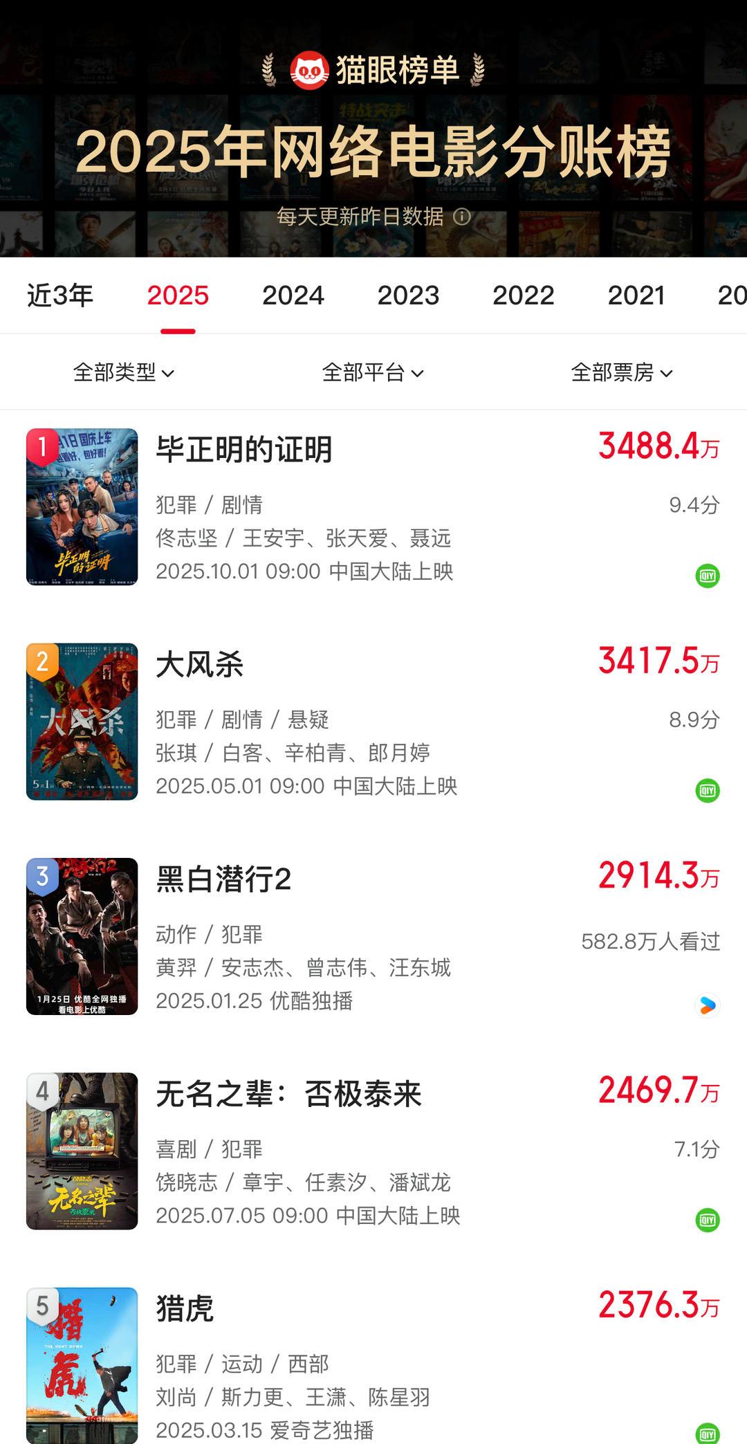 超3400万元,《毕正明的证明》登顶2025年网络电影分账榜