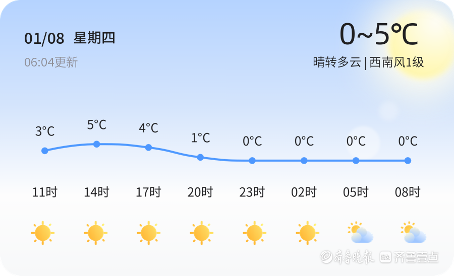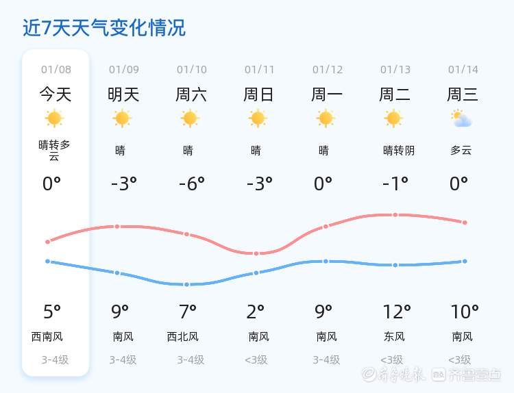 今天是1月8日,星期四,农历十一月二十。泰安市今日天气晴转多云,气温在0℃到5℃之间波动,当前温度为-5.6℃,西南风1级,空气湿度为67%,PM2.5指数为50,空气质量良好。各区天气情况总体平稳,以晴转多云为主,风力较小,适宜户外活动。明天泰安市将迎来晴朗天气,气温较今日有所回升,预计最高气温将达到9℃,最低气温为-3℃。与今日相比,明日天气更加晴朗,风力略有增强,以南风3-4级为主,市民可抓住有利时机进行户外活动。未来三天,泰安市天气趋势总体平稳,但气温波动较大。1月10日,气温将降至最低点,预计最低气温为-6℃,最高气温为7℃,伴有西北风3-4级,提醒市民注意保暖。1月11日起,气温将逐步回升,天气以晴朗为主,但温差较大,市民需根据天气变化及时增减衣物。温馨提示