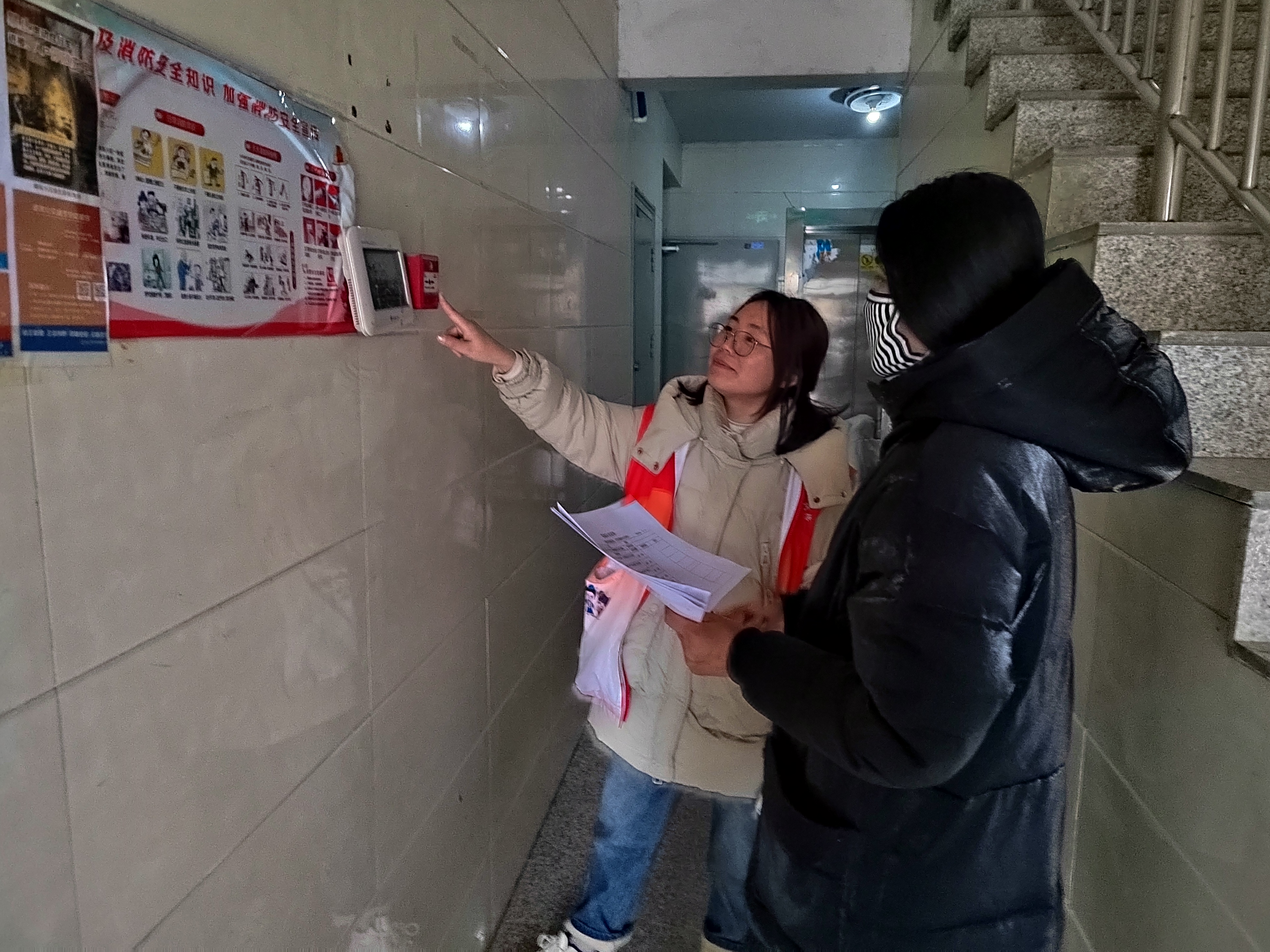 此次排查聚焦楼道杂物堆放、电动车违规停放及“飞线充电”、消防通道畅通情况、消防设施有效性等重点隐患。工作人员逐栋逐层细致检查,对楼道堆放自行车、纸箱等问题,现场告知居民隐患危害并引导清理;对“飞线充电”行为,耐心宣讲规定并协助整改。