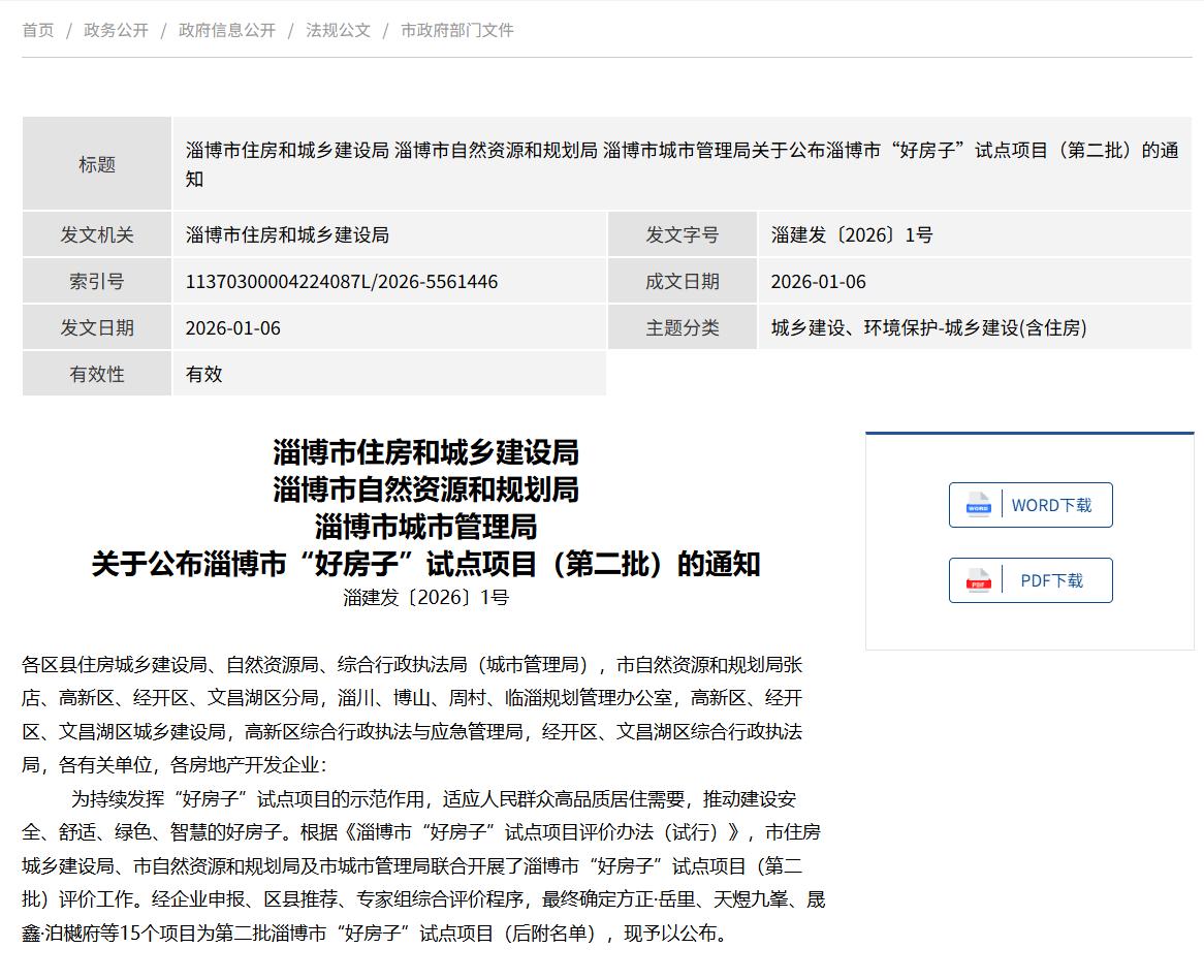 淄博市第二批“好房子”试点项目公布 15个优质项目引领居住品质升级