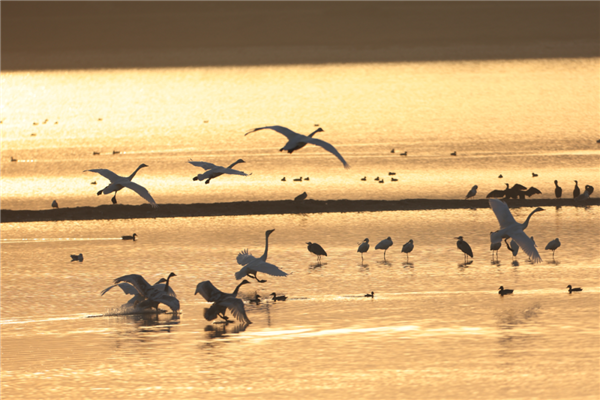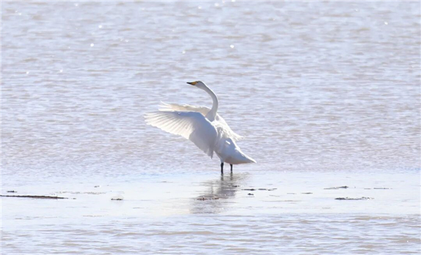 自2025年冬以来,西伯利亚白天鹅重返济南黄河北过冬,鹊山水库沉砂池变身“天鹅湖”。优越的自然环境,吸引了30多种鸟类到此栖息安家。除国家二级保护动物大天鹅、小天鹅外,白琵鹭、斑头秋沙鸭等20余种珍稀水鸟也在这里现身。