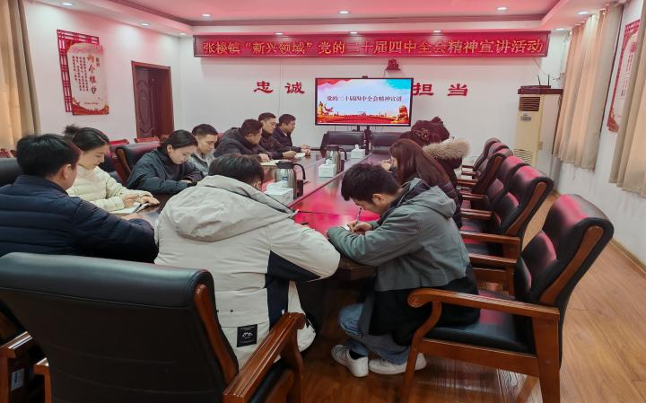 1月6日,微山县张楼镇开展新兴领域党的二十届四中全会精神宣讲活动,新兴领域党员、企业经营管理人员、骨干职工共学全会精神、共话发展方向。