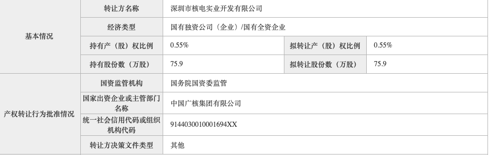 从转让方来看,深圳核电实业由广东核电实业开发有限公司控股90%,广东核电实业开发有限公司则由中广核资本控股有限公司100%持股,中广核资本控股有限公司系中国广核集团有限公司全资子公司。