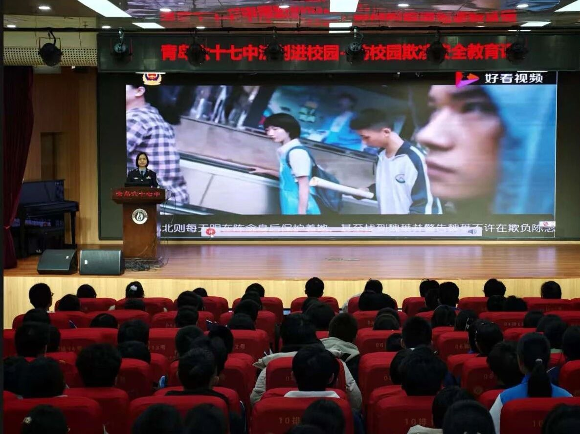 2026年伊始,中韩派出所走进青岛六十七中学,为全校学生代表带来年度首场“法治进校园”专题宣讲,以校园防欺凌为核心,为青春成长送上一堂生动的法治必修课。