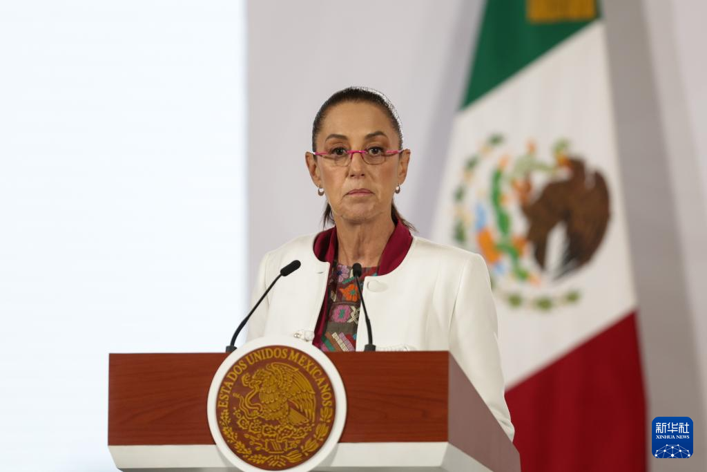5日,在墨西哥首都墨西哥城,墨西哥总统辛鲍姆参加新闻发布会。