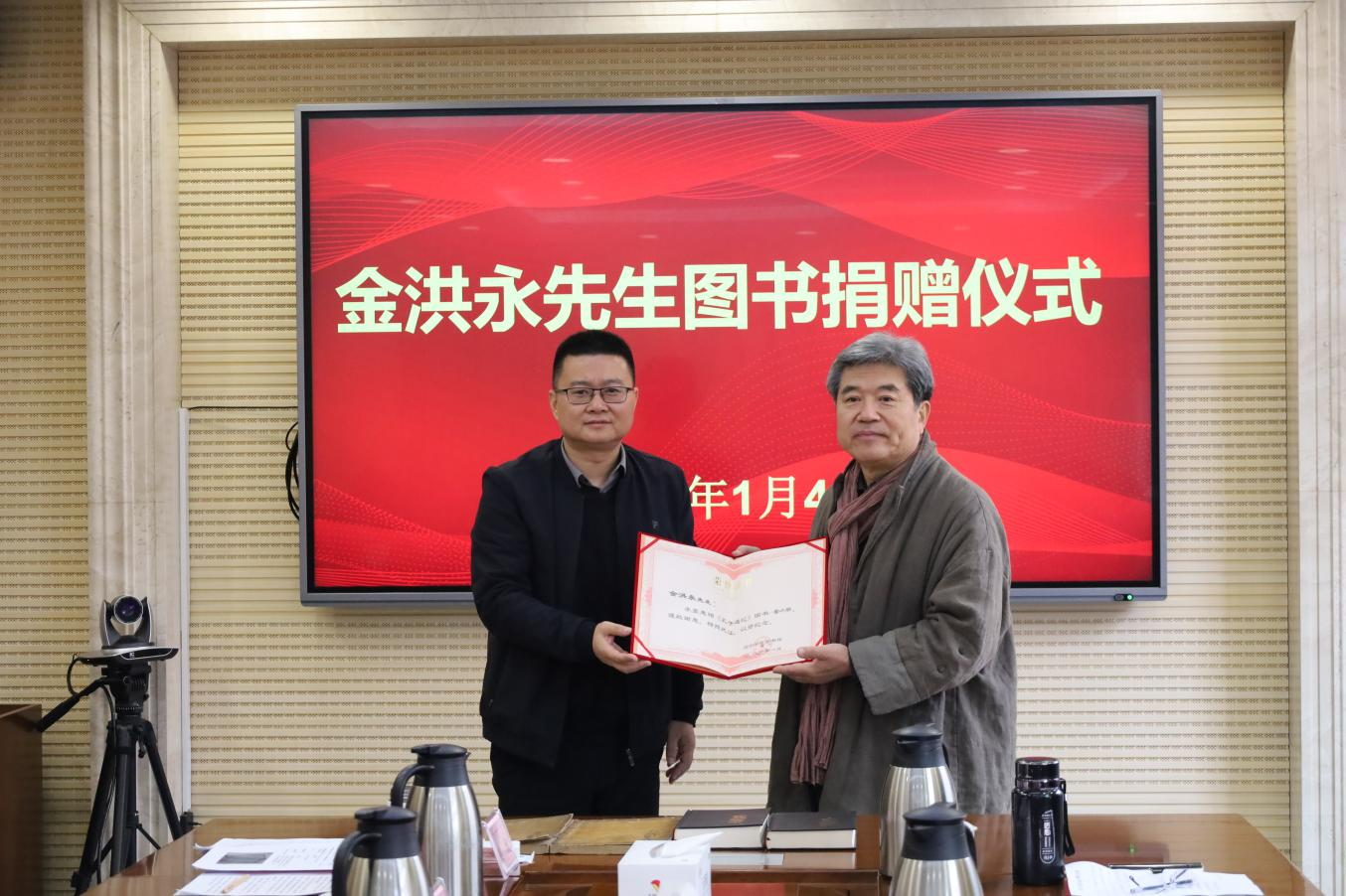 1月4日上午,韩国著名学者、釜山大学金洪永教授珍本图书捐赠仪式在济宁学院举行。副校长刘国栋出席仪式并致辞,党委委员、宣传部部长刘克非主持仪式。济宁学院校友、原曲阜市史志办主任国伟,曲阜诗社副社长孔祥伟,济宁学院校友、曲阜师范大学博士生导师广少奎,以及相关部门负责人、师生代表参加仪式,共同见证此次文化馈赠。