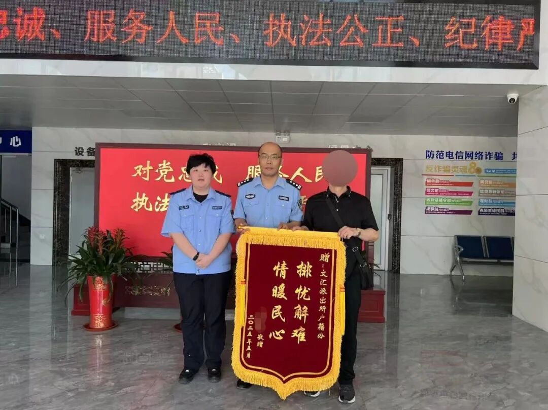 2025年5月14日,左先生特送来书有“排忧解难,情暖民心”的锦旗,感谢文汇派出所户籍窗口的暖心关怀。