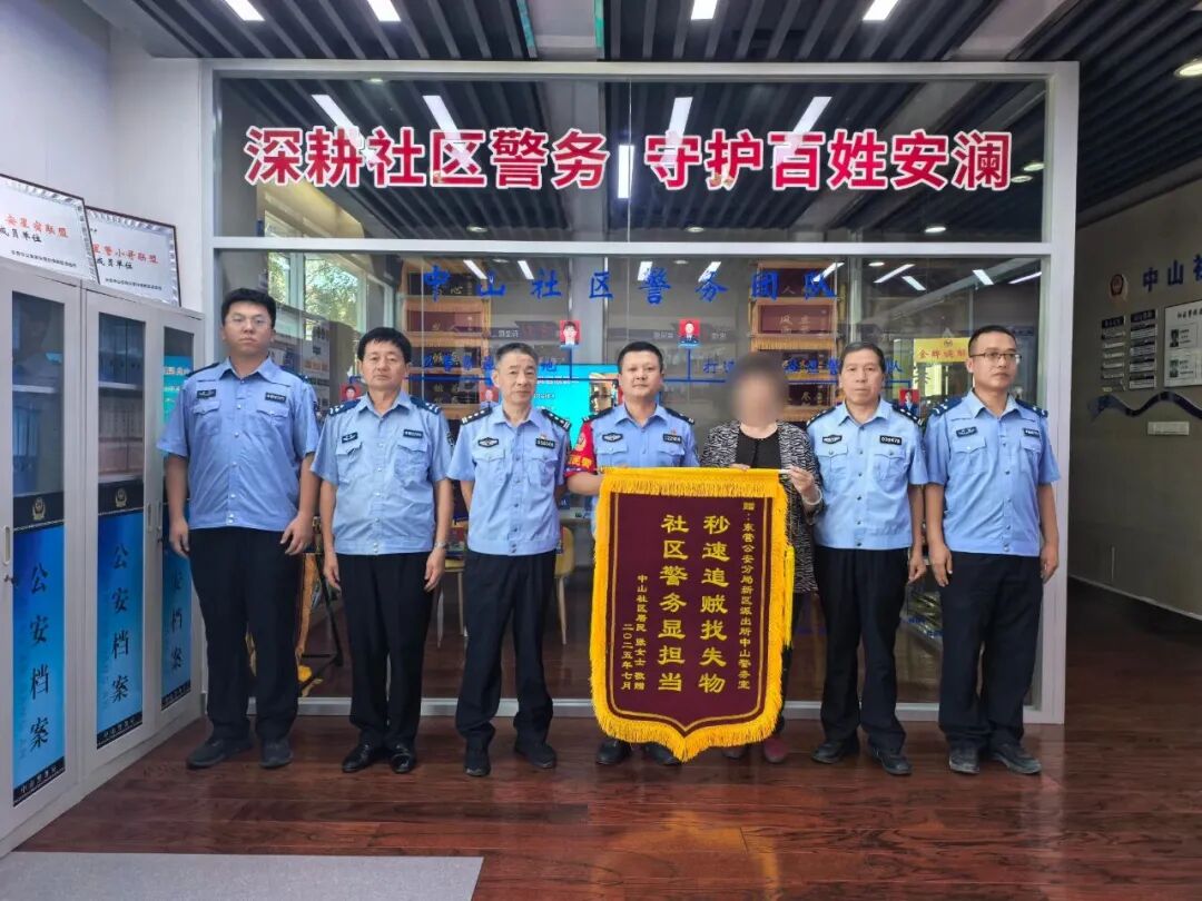 2025年7月28日上午,张女士专程携带一面印有“秒速追贼找失物,社区警务显担当”的锦旗来到东营公安分局新区派出所中山警务室,对民辅警的辛勤付出表示衷心感谢。