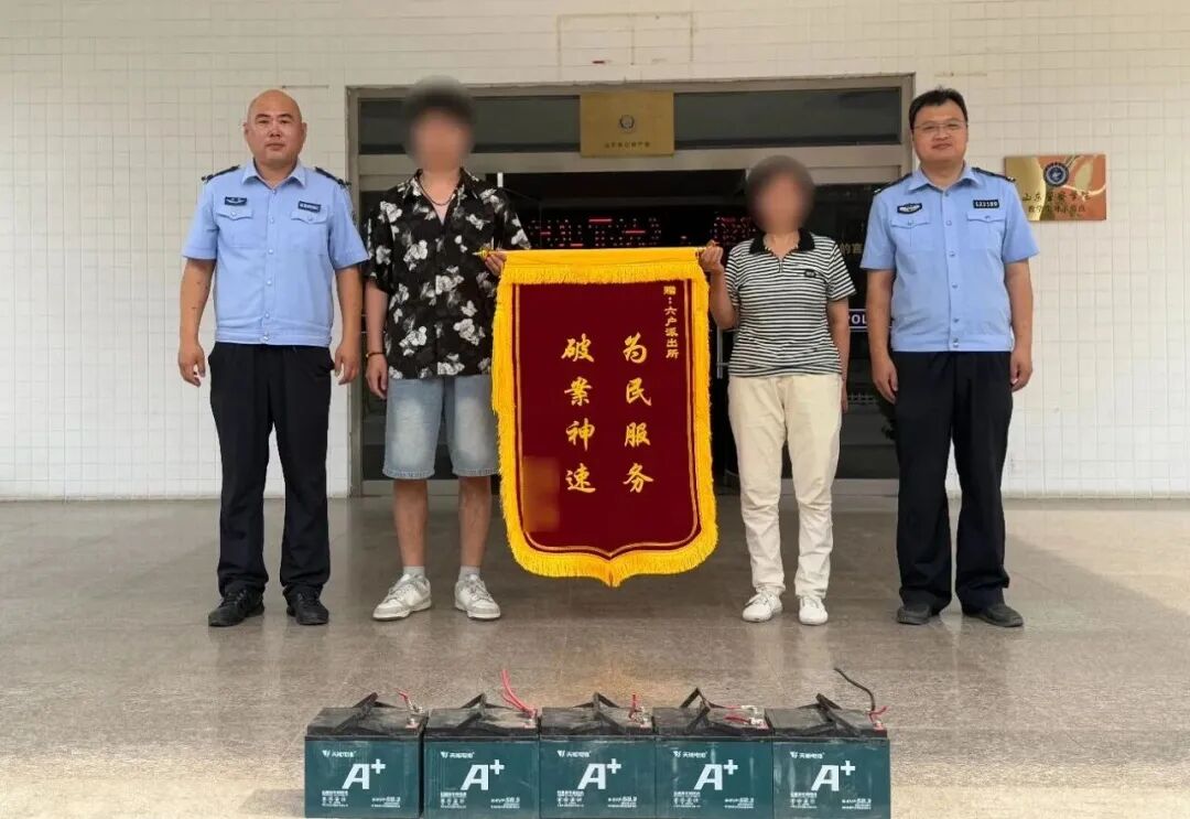 2025年7月28日8时许,六户派出所接到群众万女士报警,称其停放在家门口的四轮电动车及五块电瓶被盗。接报后,派出所民警迅速赶到现场了解情况。结合掌握线索,办案民警仔细调取周边监控,经过2个多小时的追踪研判,成功锁定嫌疑人踪迹并于当日14时许将其在某出租屋内抓获。此时,从接警到找回仅用6小时。