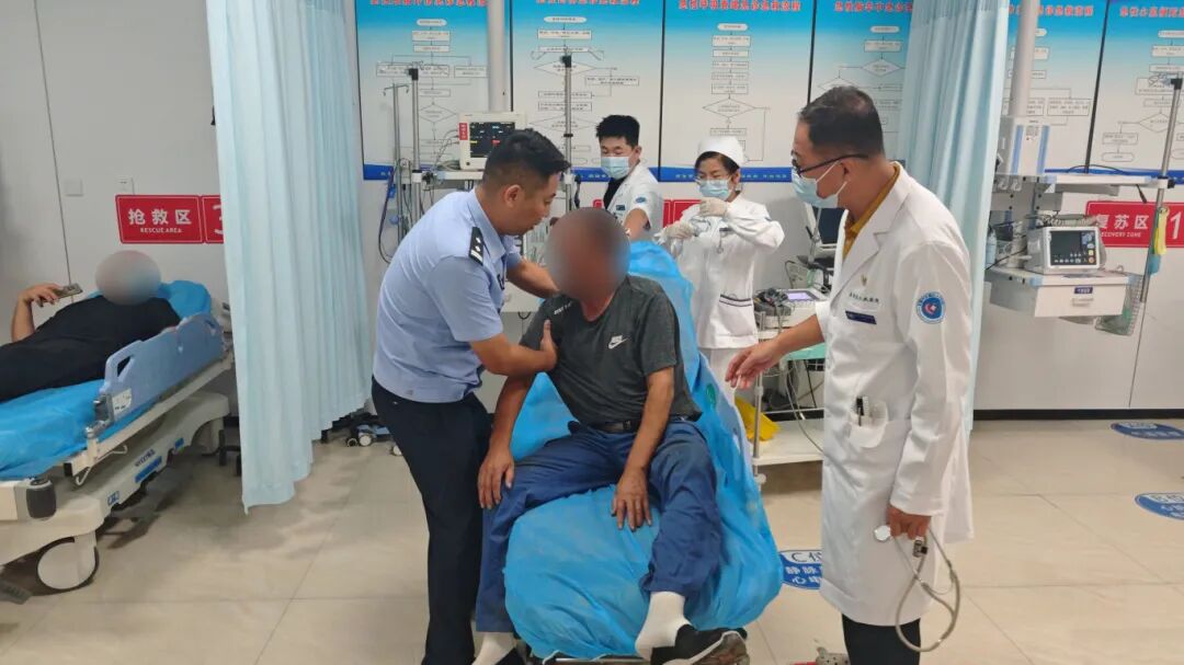 情况紧急,民警立即将张先生扶上警车送往东营区人民医院,途中持续安抚其情绪并与医院提前沟通备好急救。因张先生家属均在外地,刘培洋主动充当“临时家属”,全程陪同检查、缓解其紧张情绪,直至两小时后家属赶到并详细交接病情及注意事项,才放心离开。
