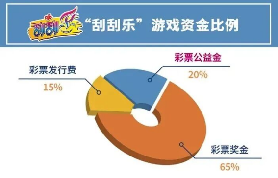 刮刮乐分别按照65%、20%、15%的比例计提彩票奖金、彩票公益金和彩票发行费。也就是说,一张10元钱的刮刮乐彩票,可以贡献0.4元的公益金。