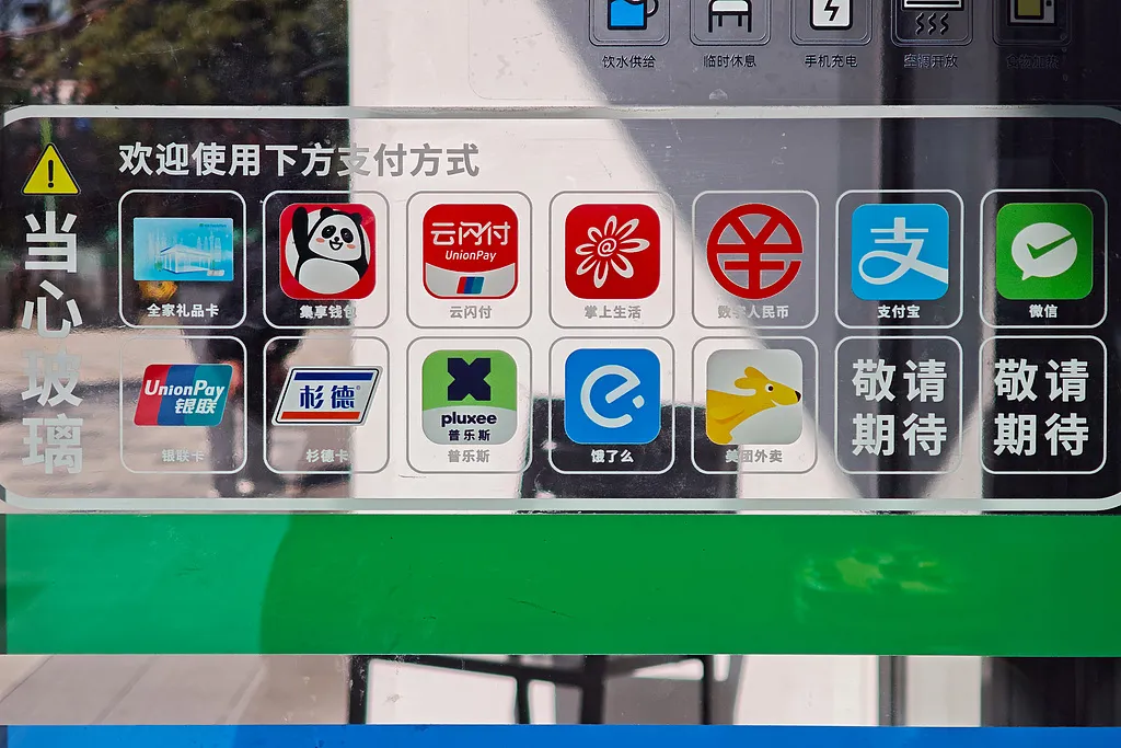 △2025年12月26日,上海黄浦区一超市外张贴了店内支持的付款方式列表,包括微信、支付宝、数字人民币等,共有十余种。