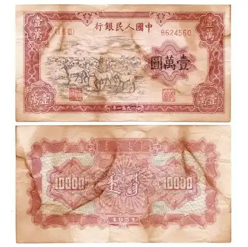 对于最近的市场行情,金凯也烂熟于心。他随口向记者介绍了几种比较受藏友欢迎的币种:“80年50元面值的(1980年发行的第四套人民币),一张能卖500到700元,100元面值的能卖400到600元;62年‘车工2元’(1962年发行的第三套人民币中的2元纸币)最吃香,单张能到1000多元。”至于“牧马图”(1951年发行的第一套人民币)、“大黑拾”(1953年版的10元纸币)这类顶级稀缺品,他更是直言“少见得很,那样的价格更高,全品相的几十万元一张,旧的几万元一张都有人收”。这些有历史沉淀、存世量稀少的品种,即便在市场调整期,价格也稳稳当当。2022年9月份,一张1951年版的牧马一万元PMG-53E拍出了1500万元的天价,含佣金以1725万元成交,创下了人民币收藏的价格纪录。