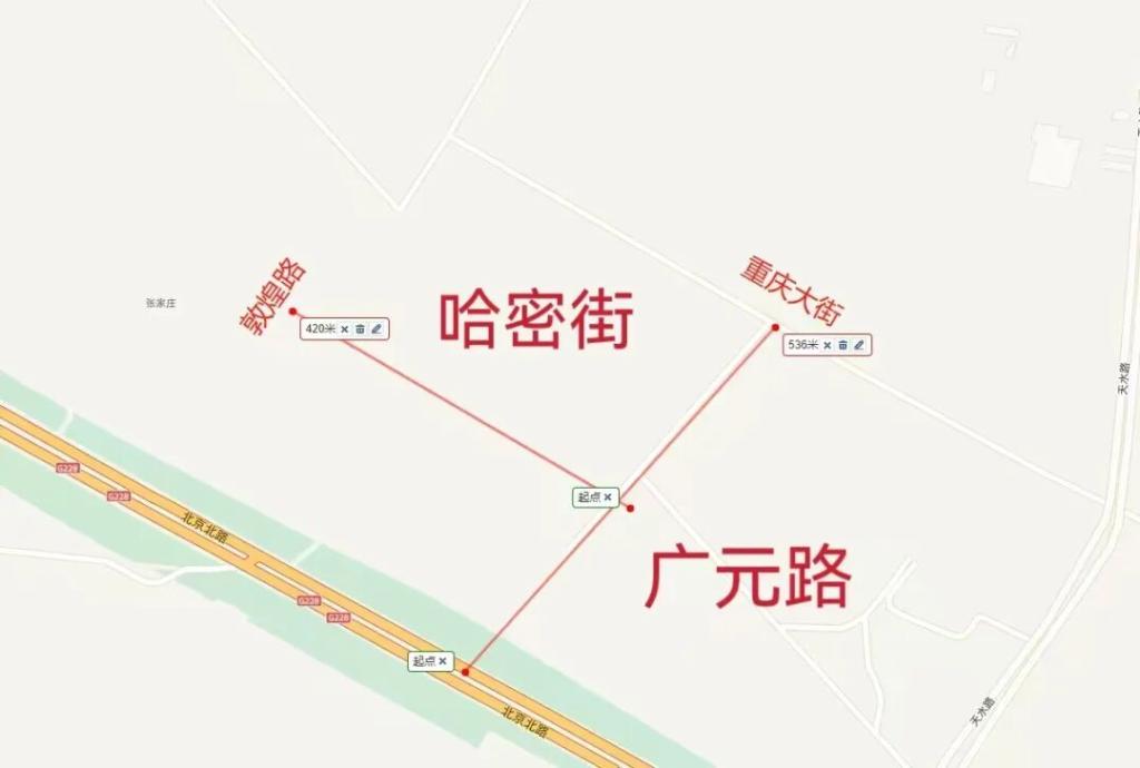 哈密街:东起广元路,西至敦煌路,北京北路北侧道路。