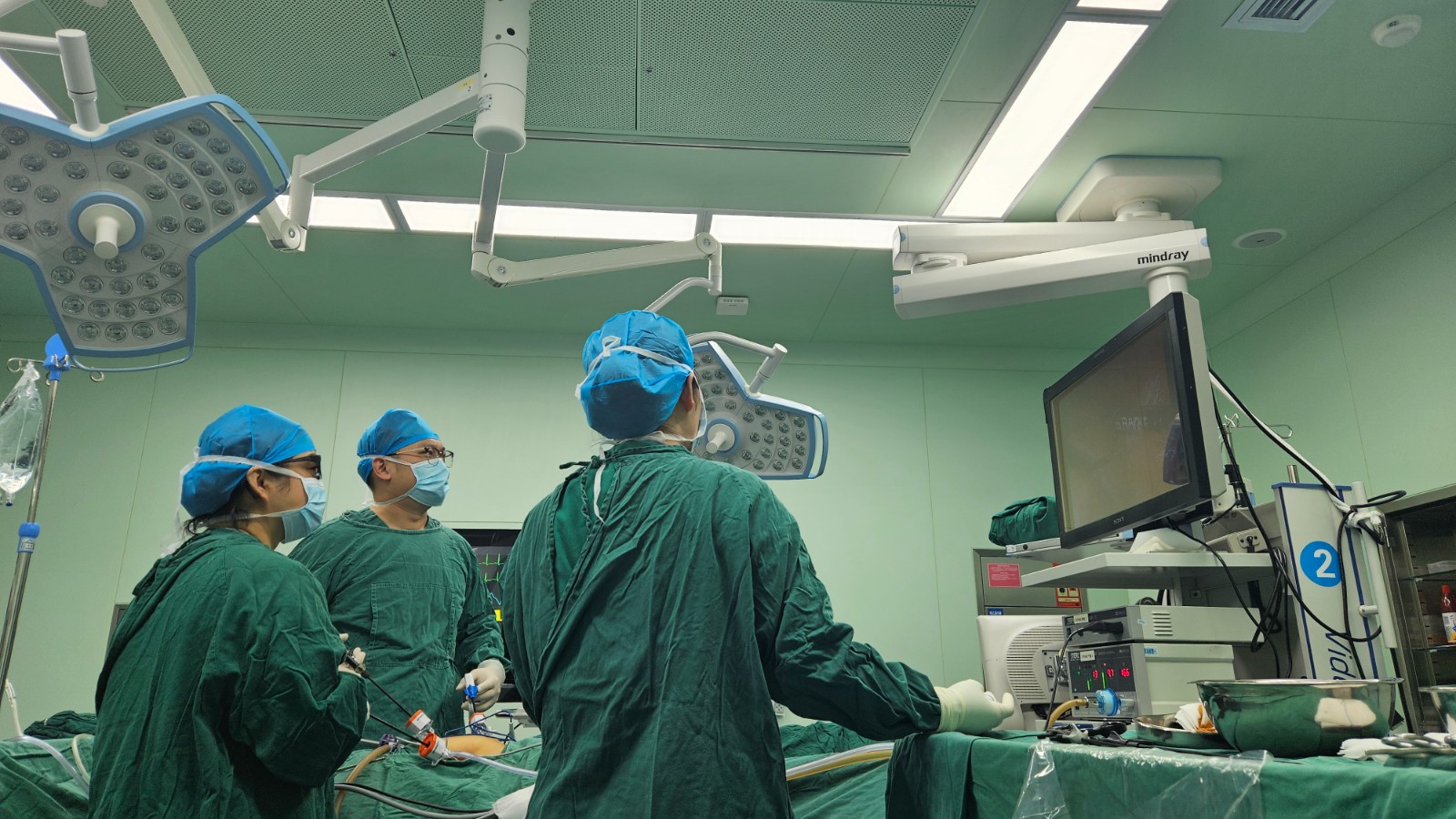 面对患者年龄、异位妊娠处解剖学结构的特殊性及病情的危急程度,朱俊晓当机立断:“立即启动应急预案!”,妇科、麻醉科与手术室迅速联动,决定采用腹腔镜辅助下右输卵管切除+妊娠物切除。这一决策既确保了病灶的彻底清除,又避免了二次手术风险。