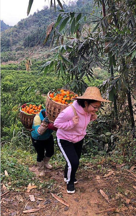 黄文秀生前与村民一起采摘运输砂糖橘(资料图)。新华社发