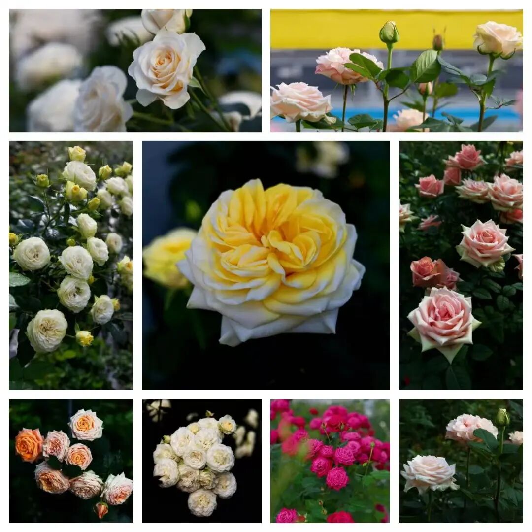 拼版图片:蔡艳飞团队培育的各式各样美丽的“中国风”月季。新华网 赵普凡 摄