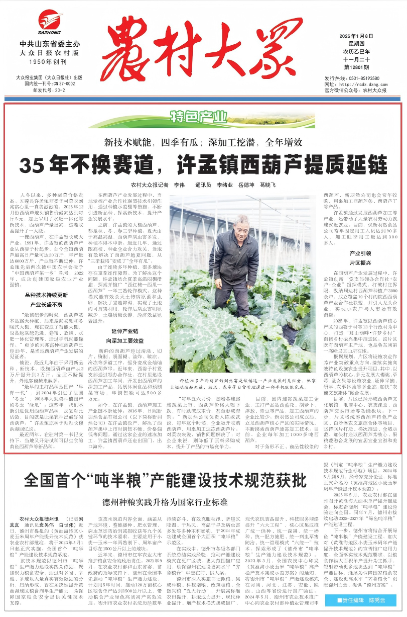 今日报纸头条 | 35年不换赛道,许孟镇西葫芦提质延链