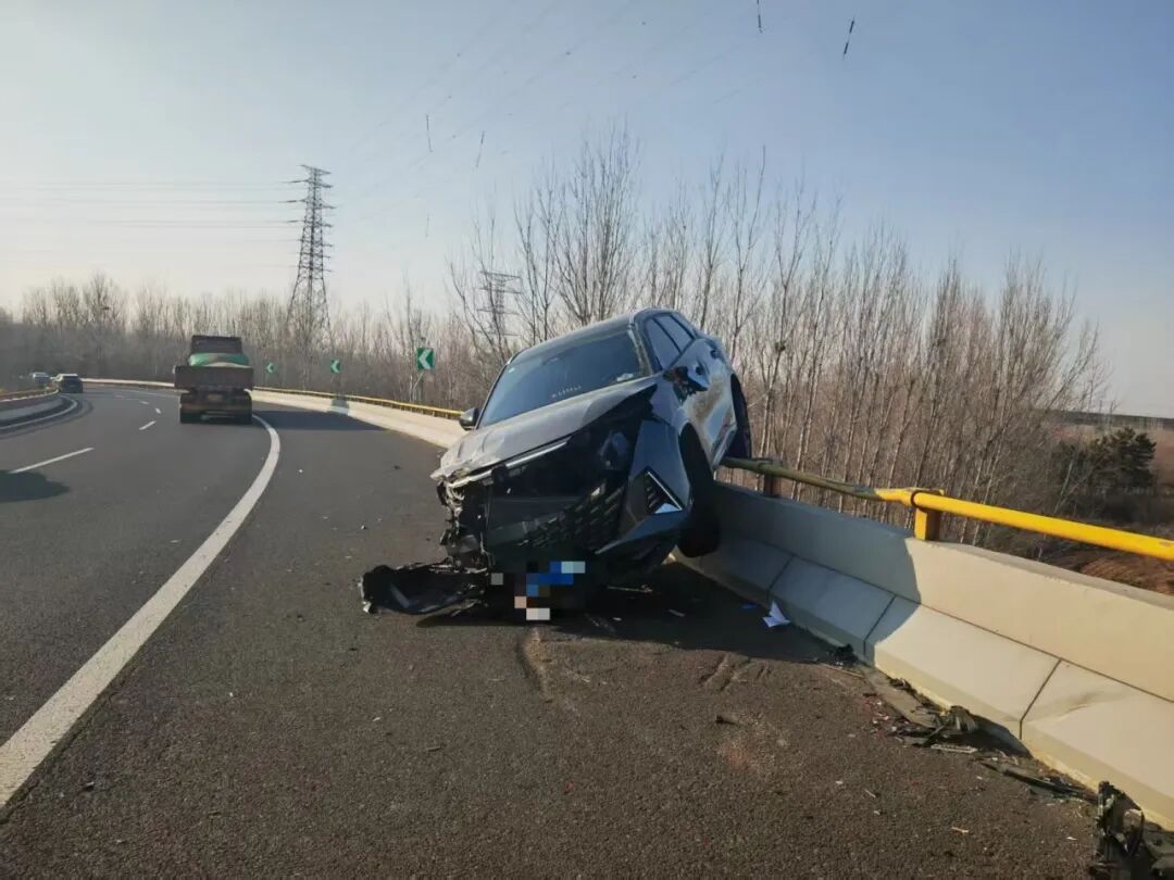 2026年1月1日下午两点左右,山东省公安厅交通管理总队直属高速二支队黄岛大队接到报警称,一辆小型轿车行驶至徐村枢纽时,进入弯道时车速过快,撞边侧护栏,车辆和护栏严重受损,所幸未造成人员伤亡。