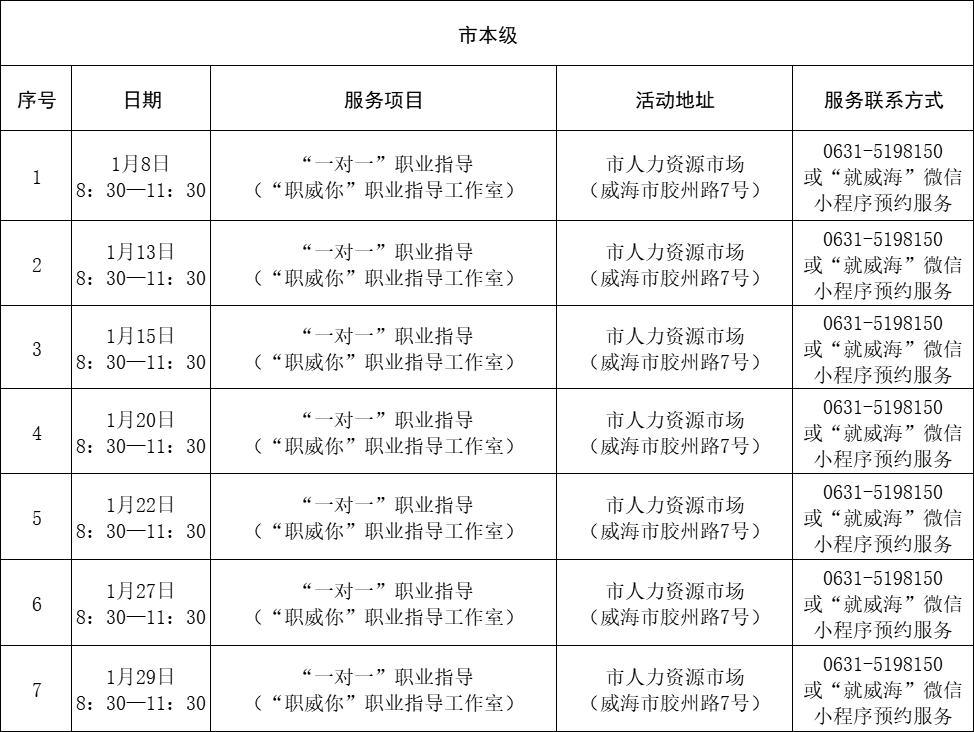 “职”导面对面!威海1月份职业指导服务活动计划表请查收