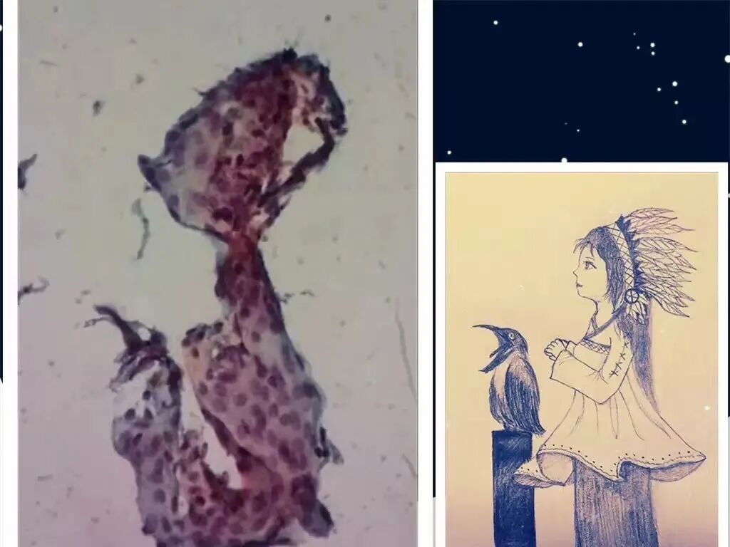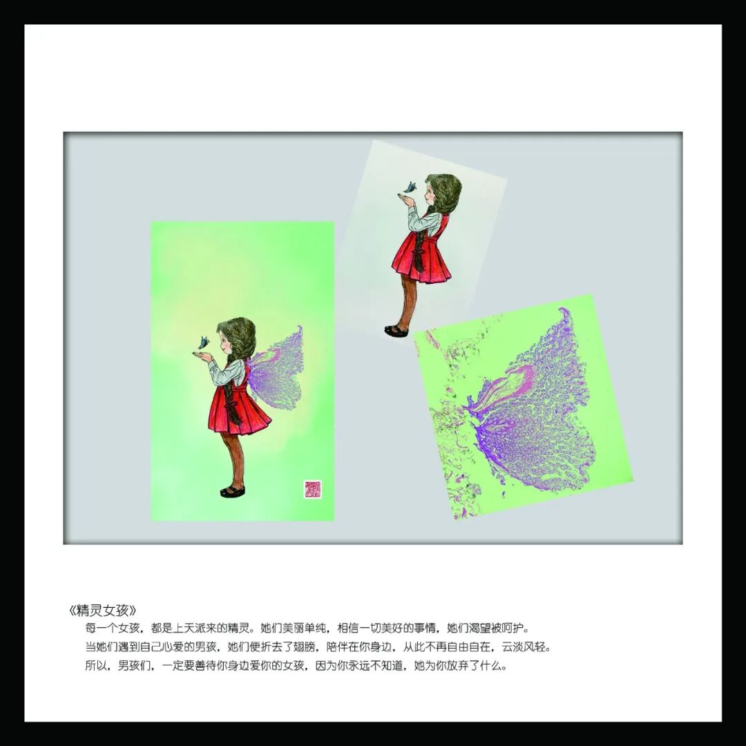 《虔诚祈祷的印第安女孩及智慧之鸟》展现的是少女的纯真,包含的是她对生活的热爱……一幅幅精巧的作品,勾画了病理艺术世界的美,也彰显了一名医生的人文素养。从寻找、拍摄、绘画到赋予病理图像一个有灵魂的故事,这些作品就像是侯巍巍的孩子,她看着它们成长,并希望得到更多人的认可。虽然日常工作繁重,但侯巍巍表示,她会坚持创作,希望用这种方式为人们提供认识病理学科的全新途径,让更多人了解病理学和病理科医生,并传递生活的美。感悟:以生活美学重构职业价值